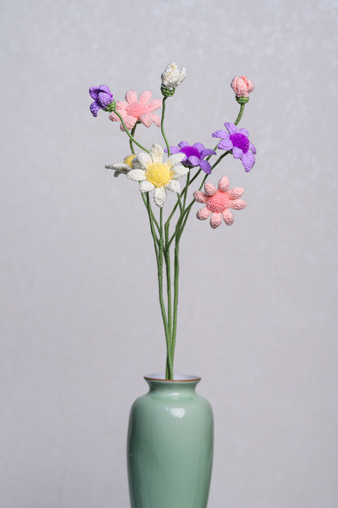 Hand-crocheted Blue Mini Chrysanthemum Flower