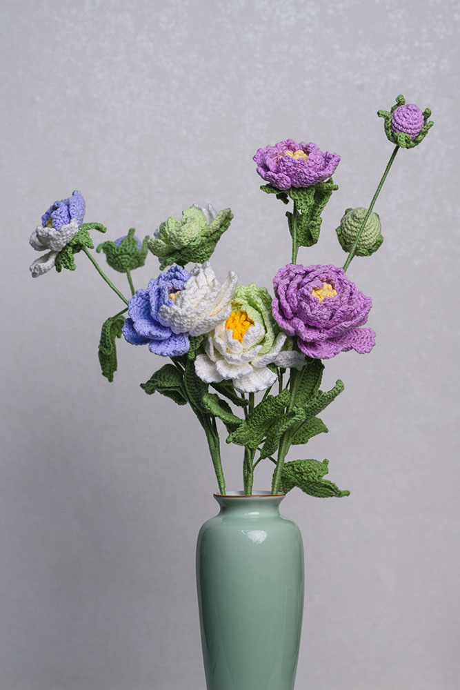 Hand-crocheted Twin Peony Flower